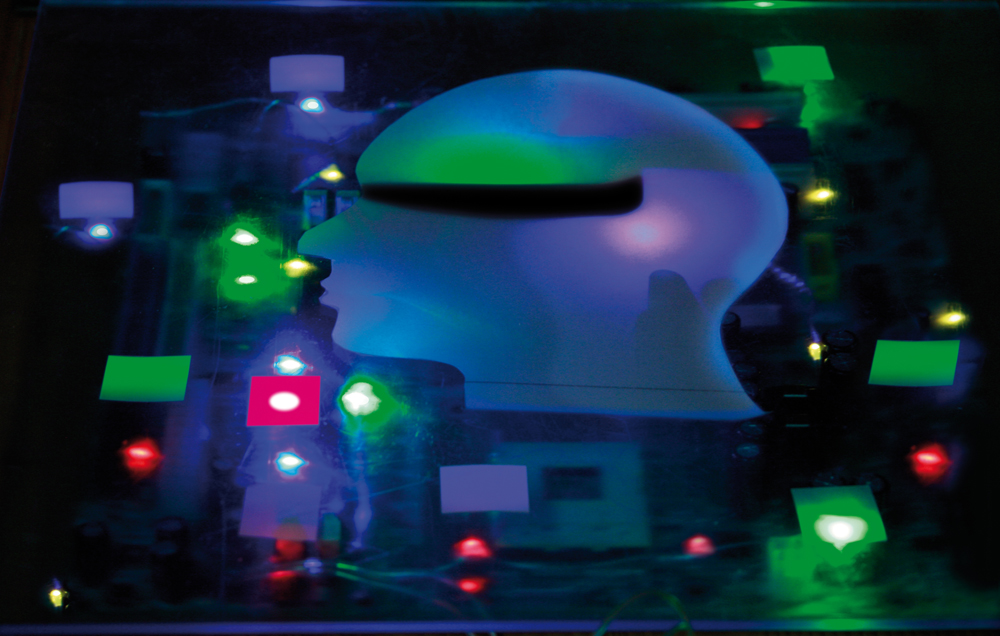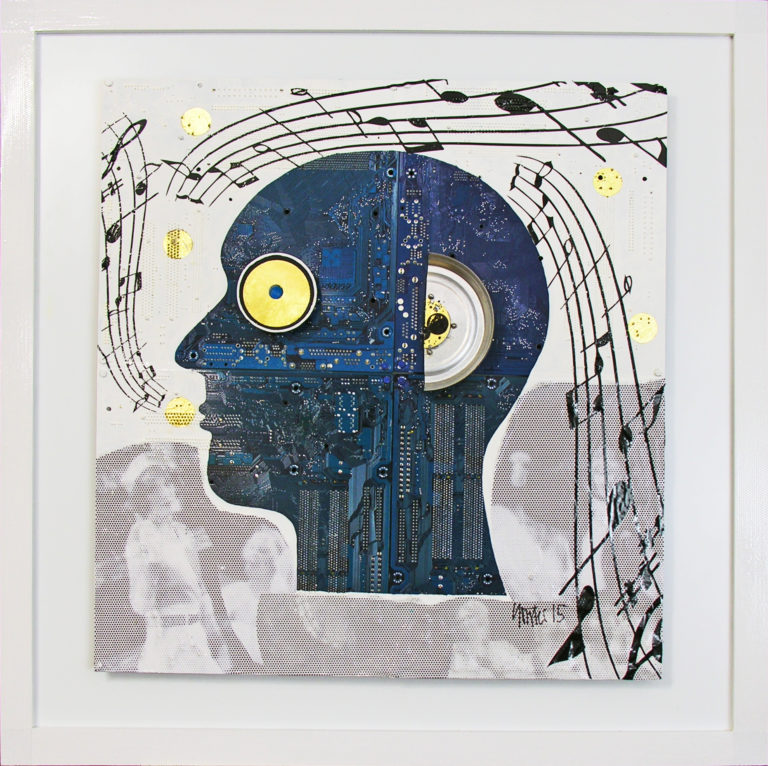 Die Idee kam mir beim Entsorgen meines alten MAC-Computers 2014. Das Innenleben mit seinen Funktionen, gedruckten Schaltungen und Platinen. Rückseitig sind die Verästlungen streng architektonisch angeordnet. Auch unsere menschliche Zentrale das Gehirn steuert uns und gibt Befehle für unser Tun und Handeln. Auch in unseren alltäglichen Gegenständen in denen Platinen eingebaut sind. Beim musizieren werden Töne digital erfasst. Es gibt auch viele Beispiele in der Natur, die über ein breites Netzwerk verfügen.